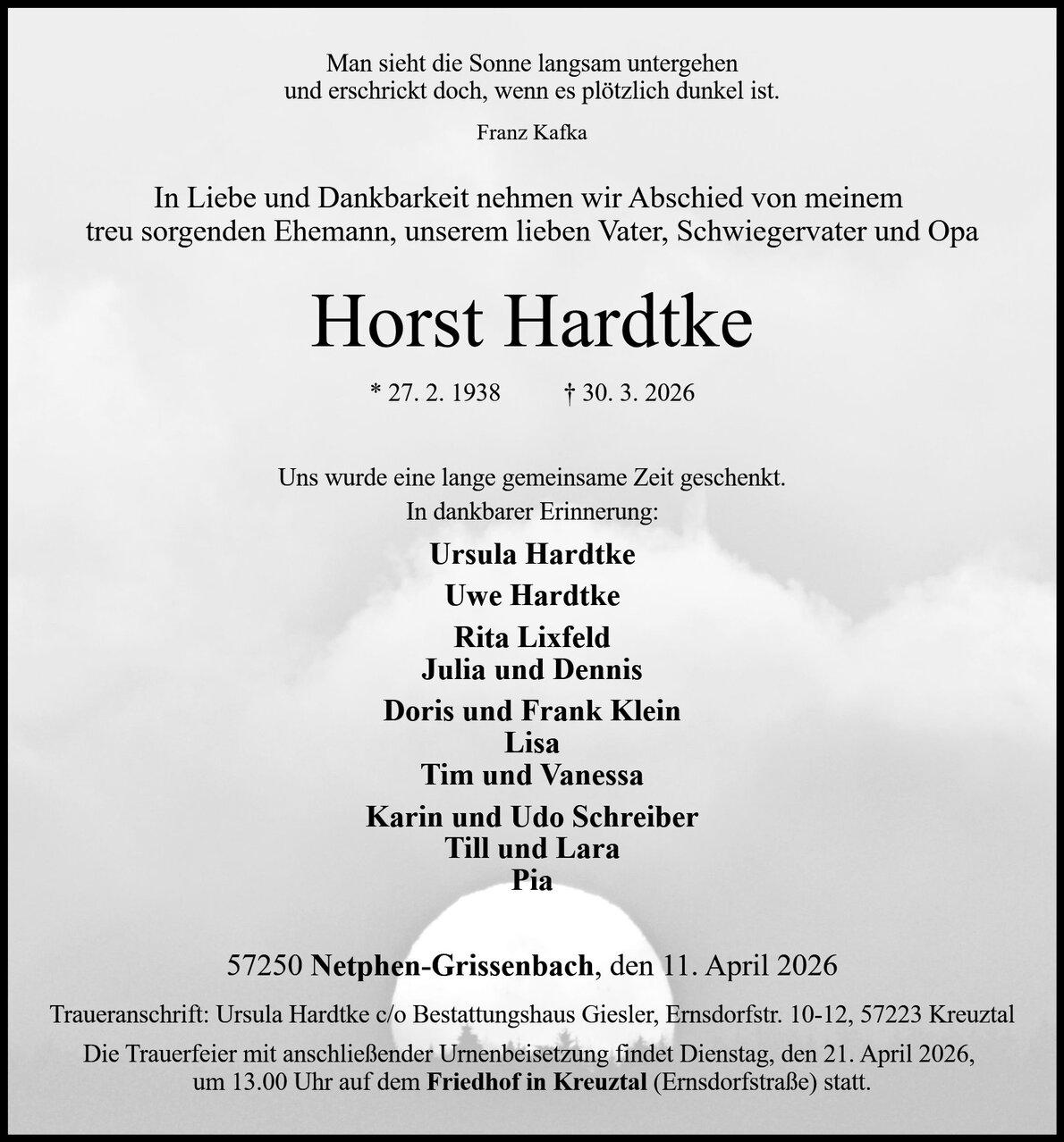 Die Trauerfeier wird begleitet durch: